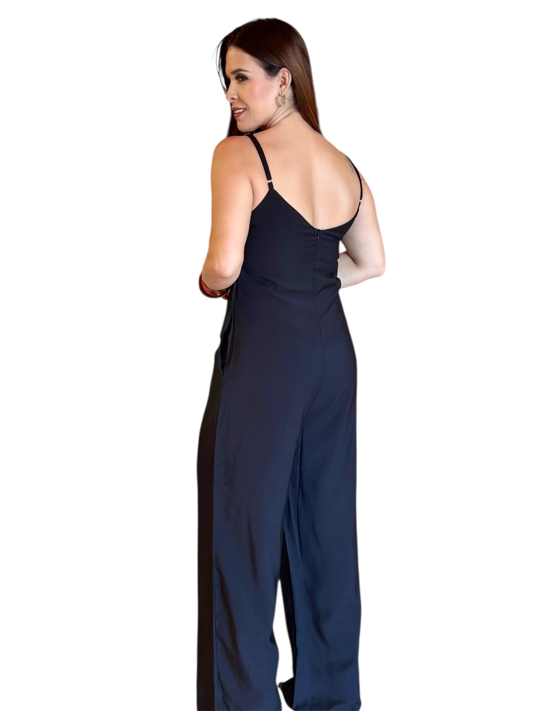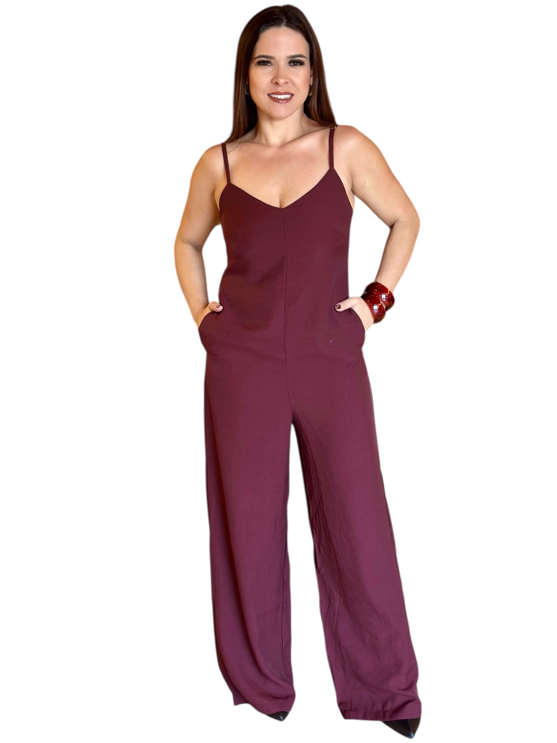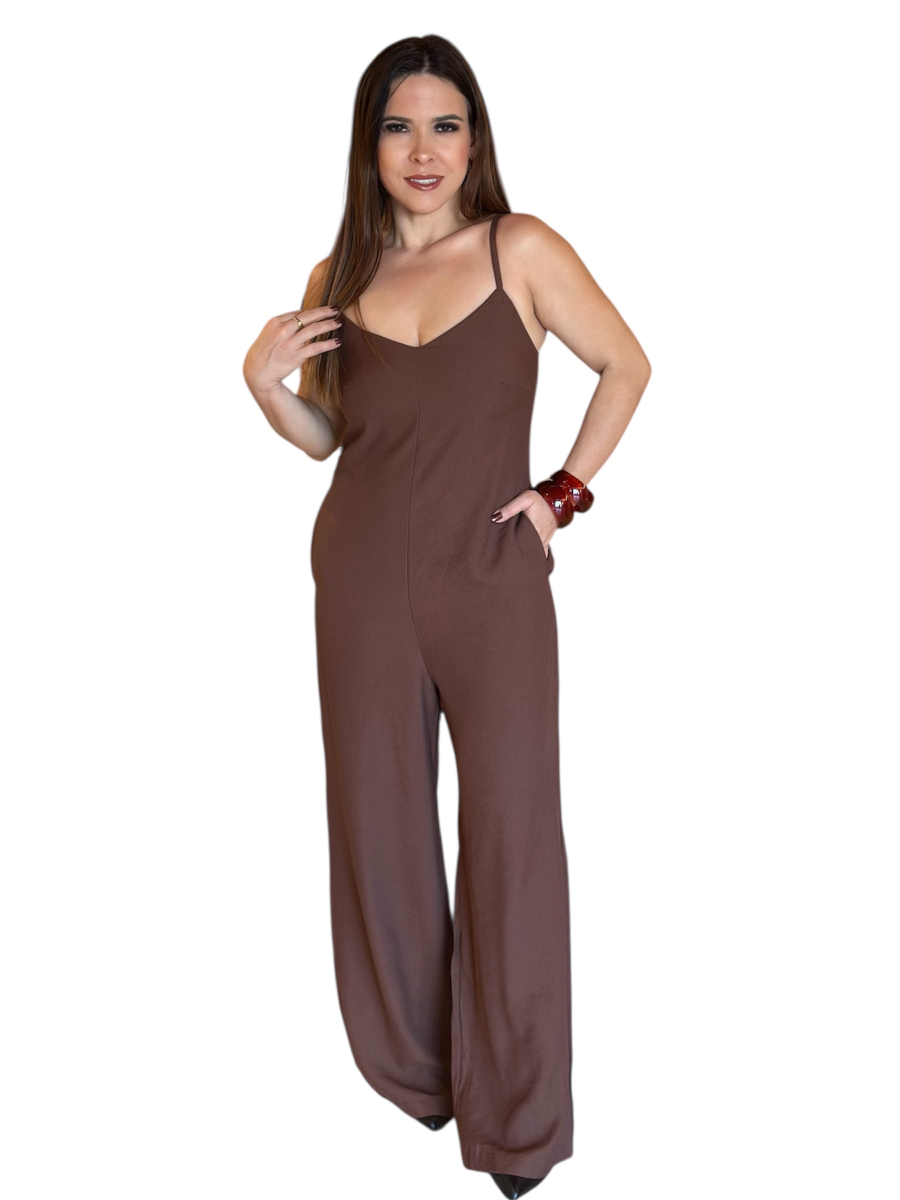 Macacão longo em tecido sensorial com toque macio e acabamento sofisticado. O modelo possui alças finas, decote levemente em V e caimento reto que alonga a silhueta. Conta com bolsos laterais funcionais e fechamento em zíper discreto nas costas, proporcionando praticidade e elegância .Ideal para composições versáteis, do casual chic ao elegante.